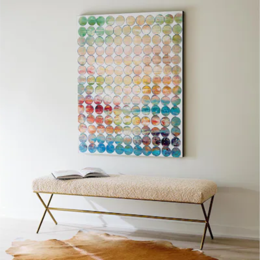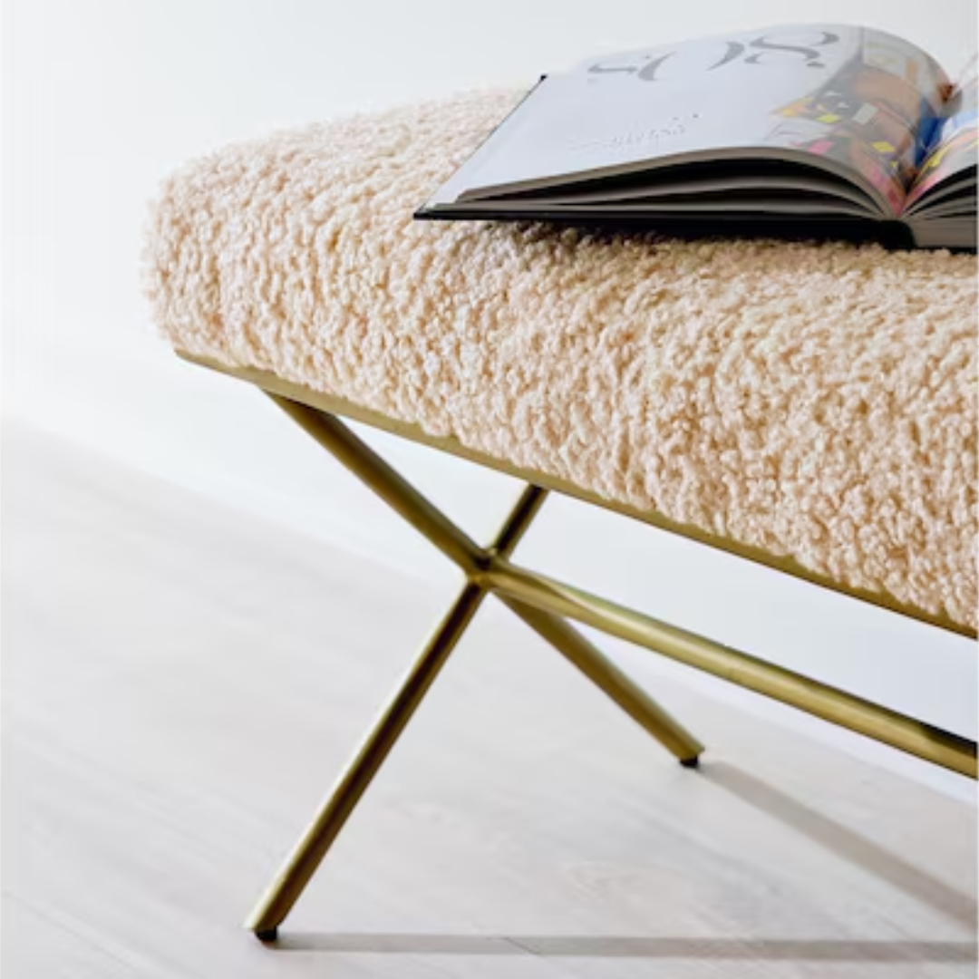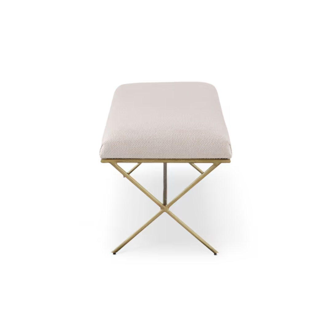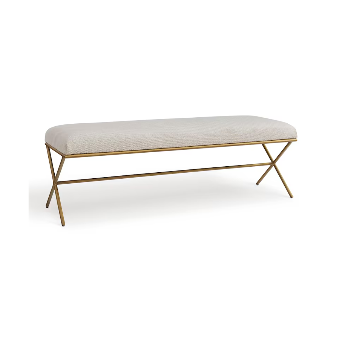 Fit this stately bench at the foot of your bed or under a console table for a custom piece to catch anyone's attention. The Kenbridge bench brass base features a crosspiece that adds stability and strength. Visit our showroom to see all fabric options.