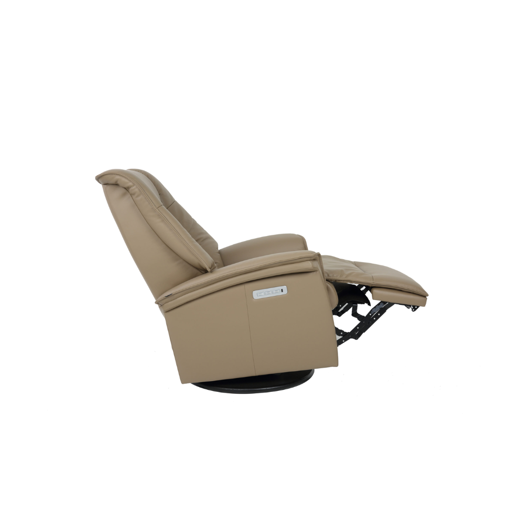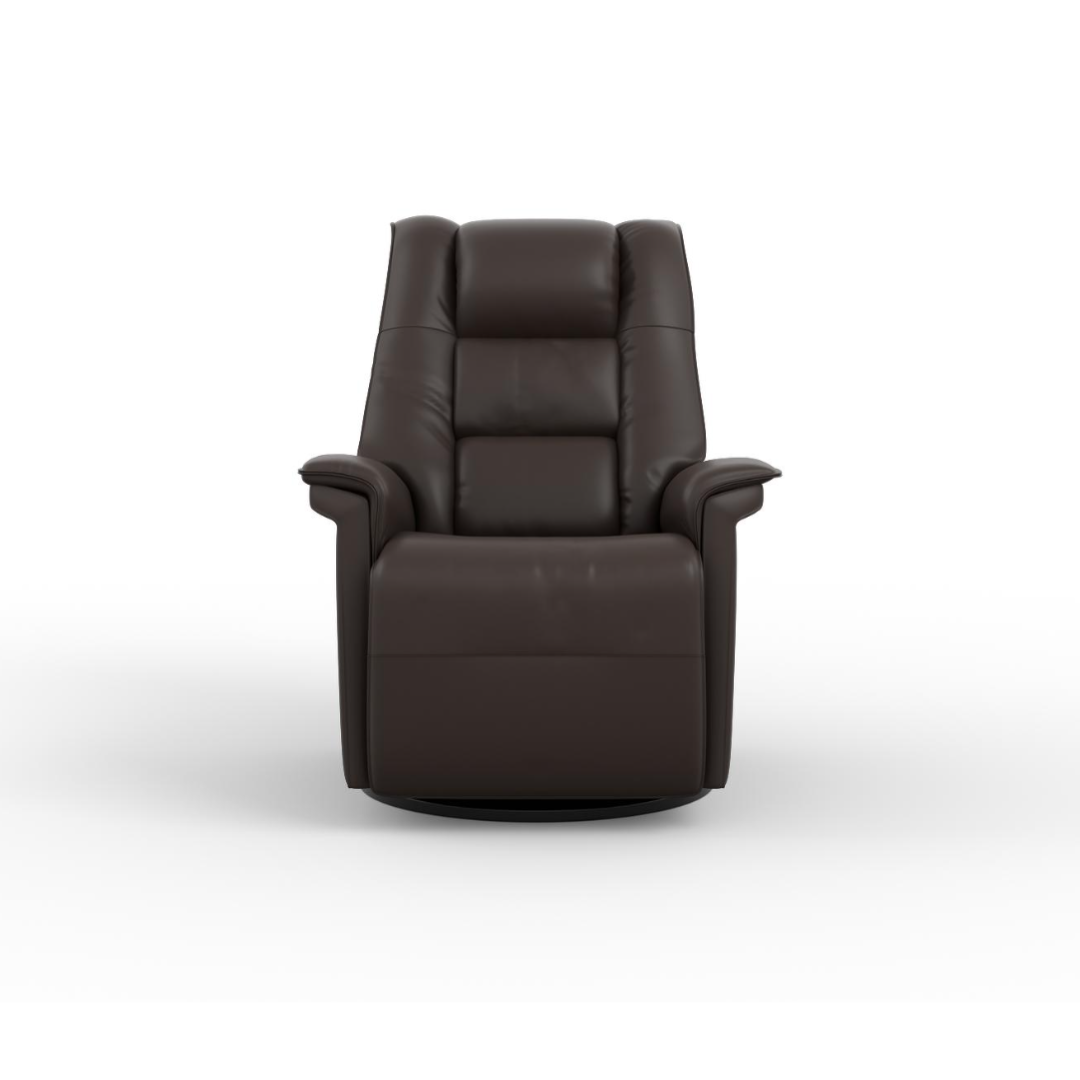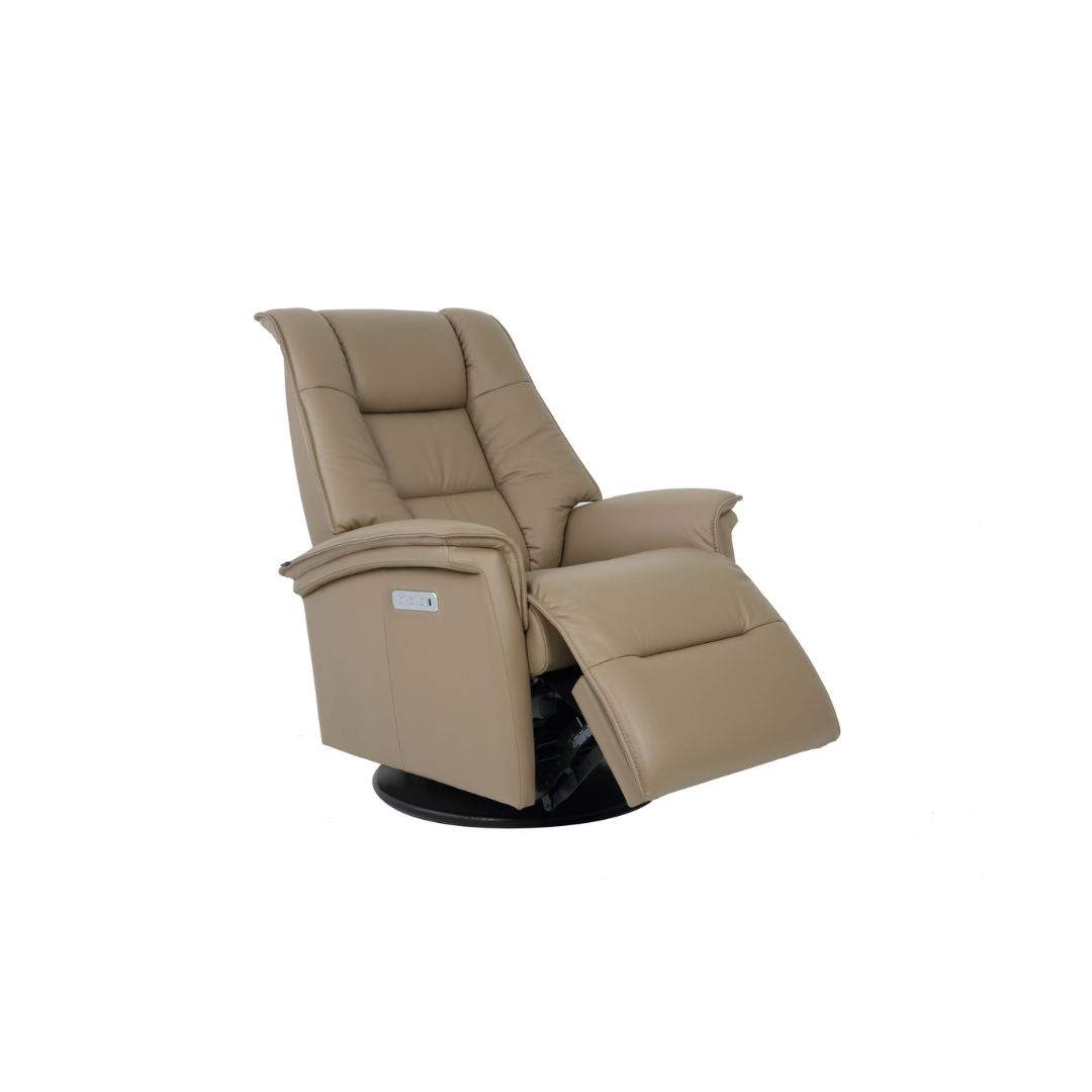 The Fjords Paris swing relaxer, featuring our three motor system, features controls for reclining, power lumbar support and power head / neck support. These details make the seating experience ergonomic and gives your lower back and neck correct support. Available in all our leathers and select fabrics, the Paris is available in two sizes, small and large. Black base is standard on Paris.